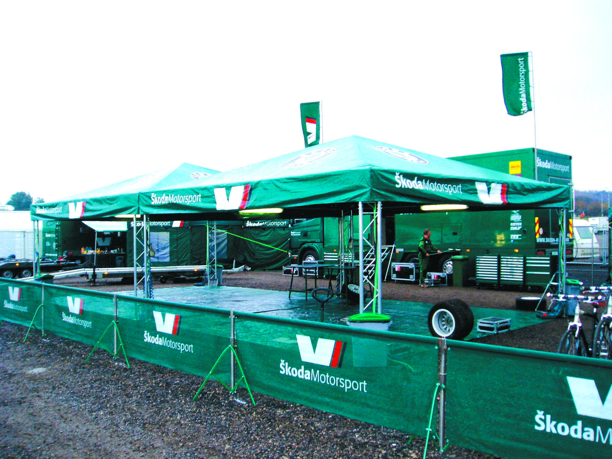 Quick and easy to assemble party tent for outdoor events, such as catering, private parties, and other social gatherings.