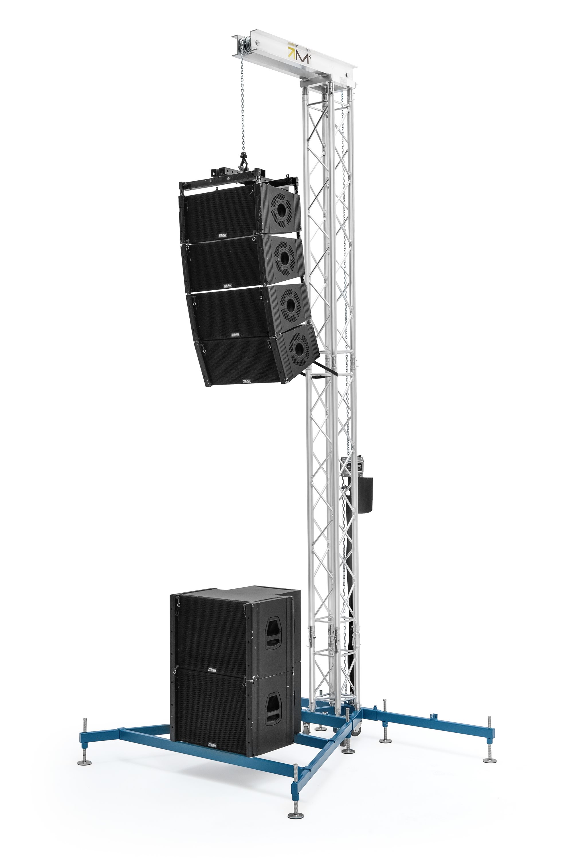 Compact PA fly tower for smaller, indoor or outdoor live event systems.