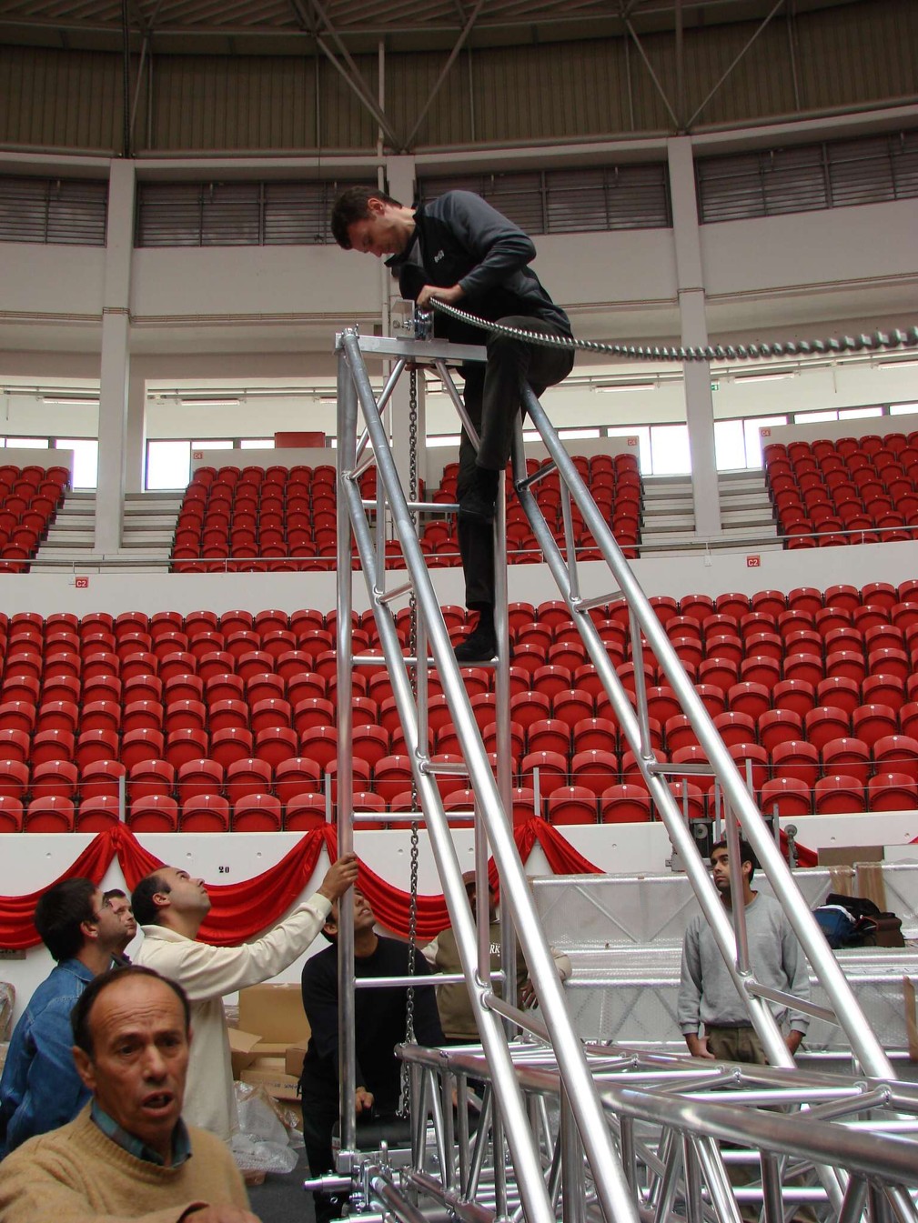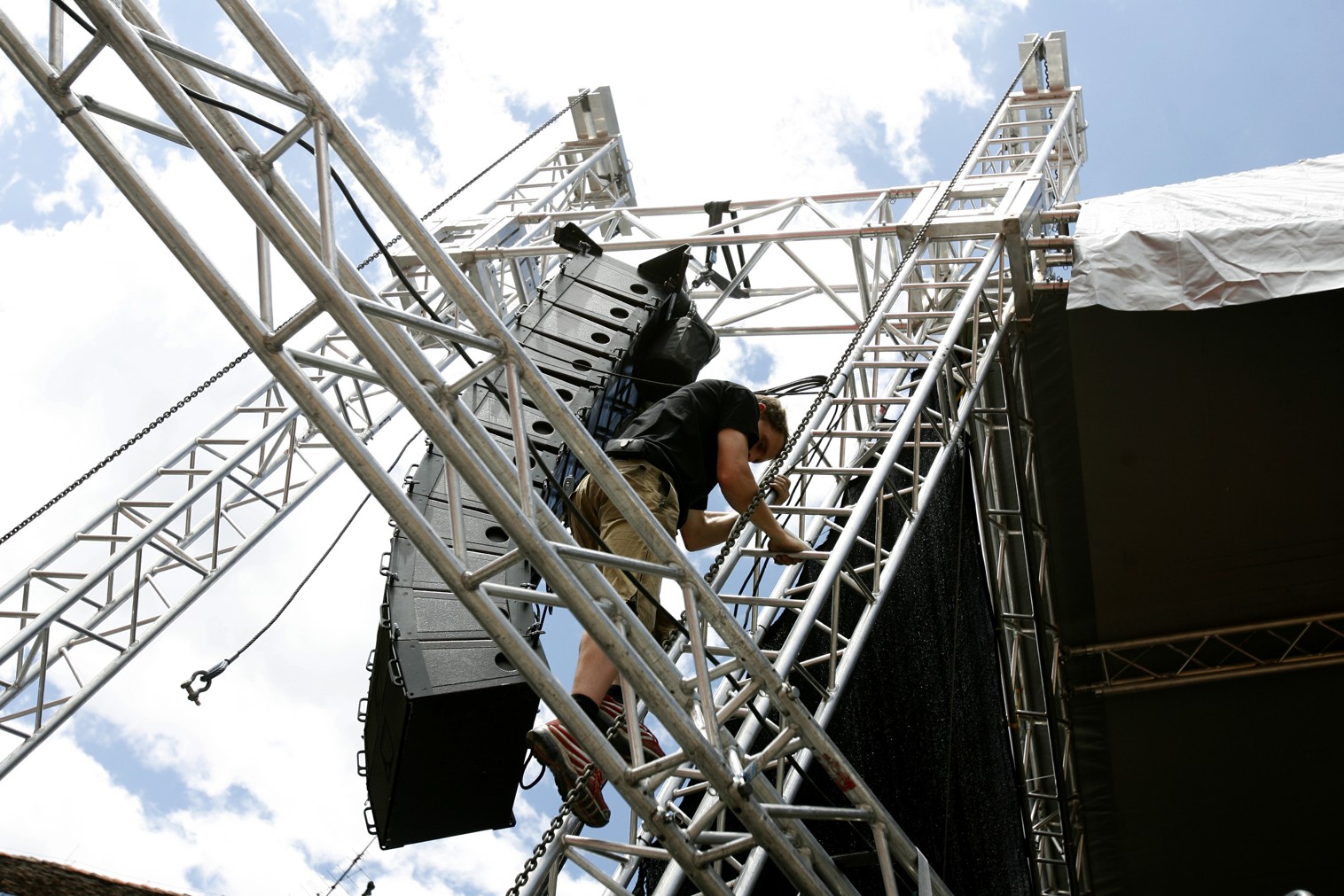 Heavy-duty 390KT ladder truss series tower system - 12.5 m (41.0 ft) max height - compatible with Quick-TrussR M400 and M520 Systems for a large variety of concert and outdoor stages. For independent use or with Milos MR2K, MR3, MR4 and MR5 Roof Systems, as well as with LSG2 and LSG3 LED screen support structures.