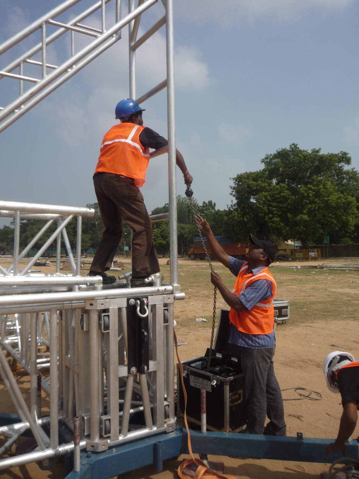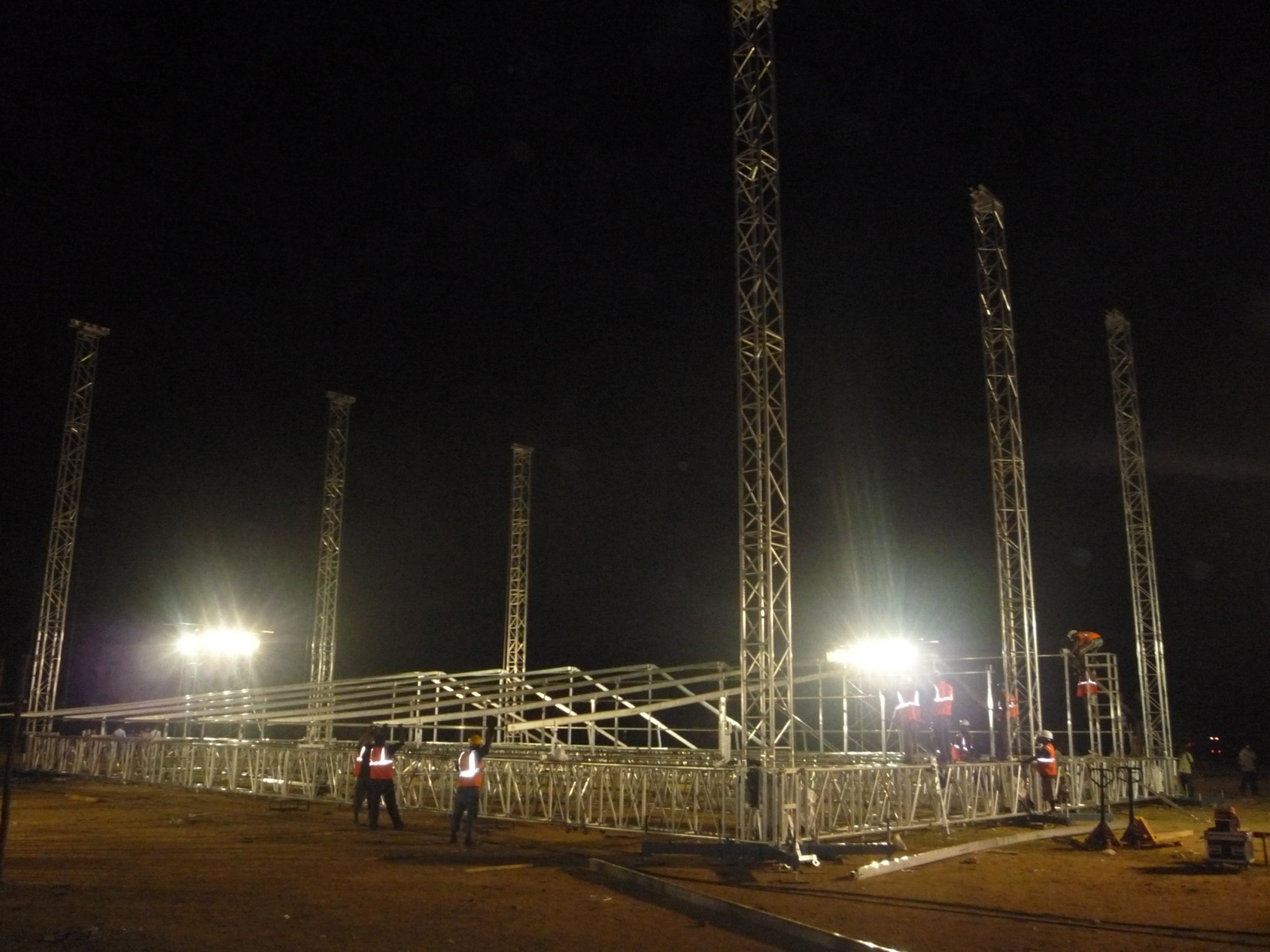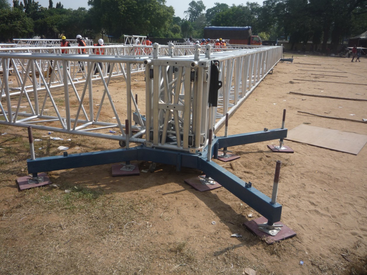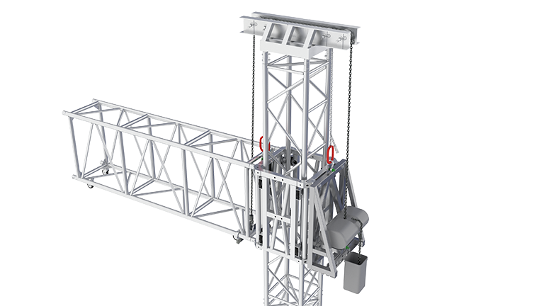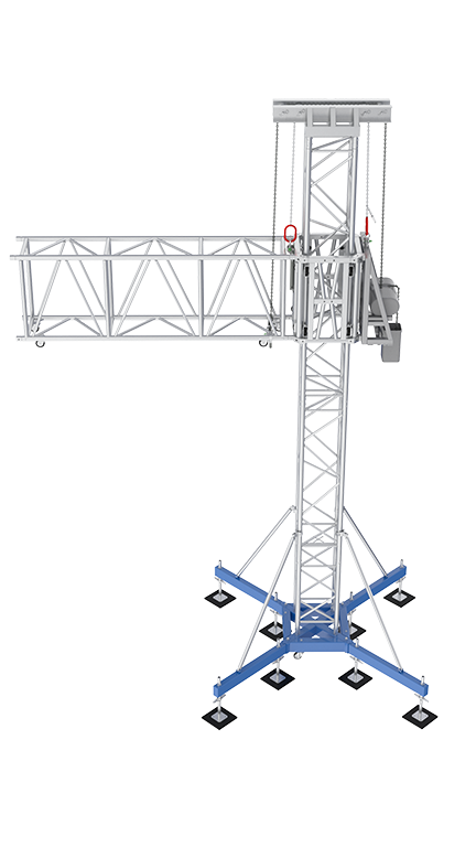 High capacity M520PT ladder truss series rigging tower - 13.5 m (44.29 ft) max height - designed for your largest events and applications, with maximum loading and free-span specifications. For independent use or together with our MR3 and MR5 roofs.