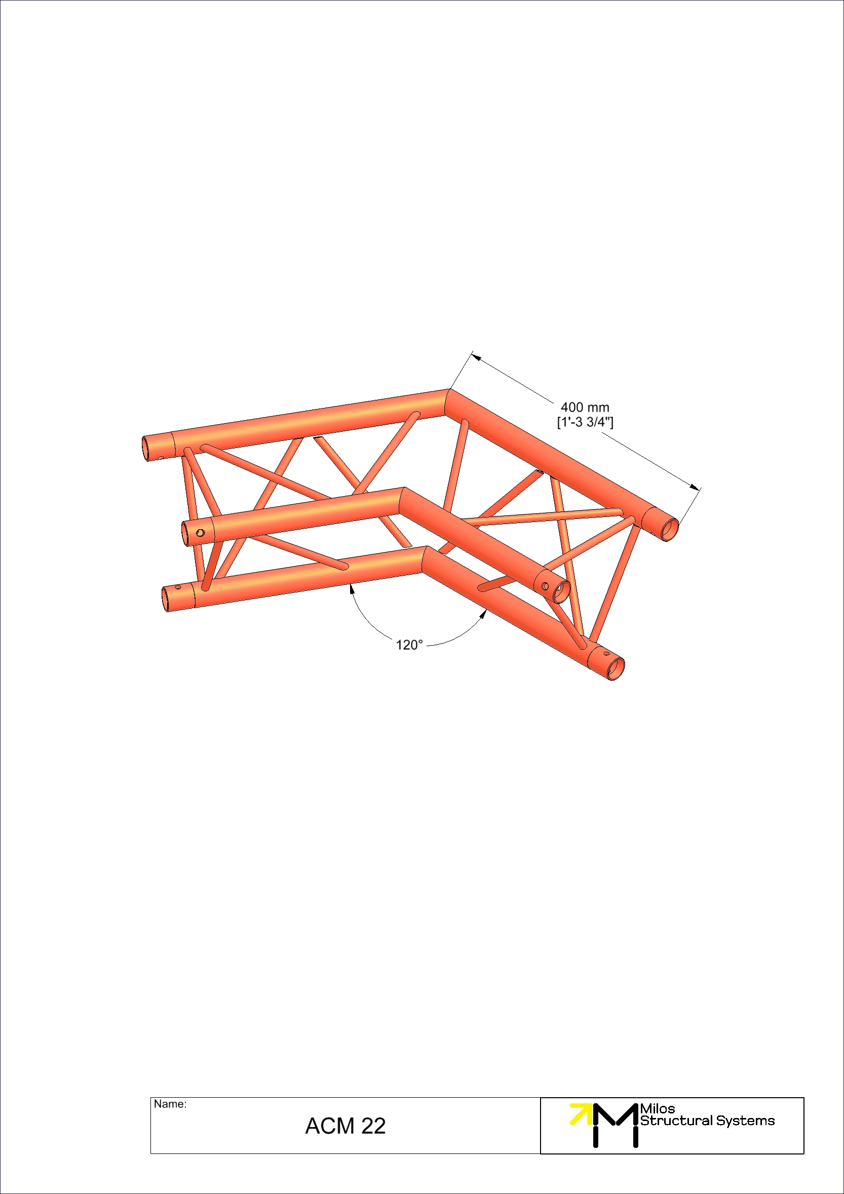 2-way corner 120°. Compatible with M222 Trio conical truss. The M222 system offers outstanding weight loading capabilities despite its small size and light weight