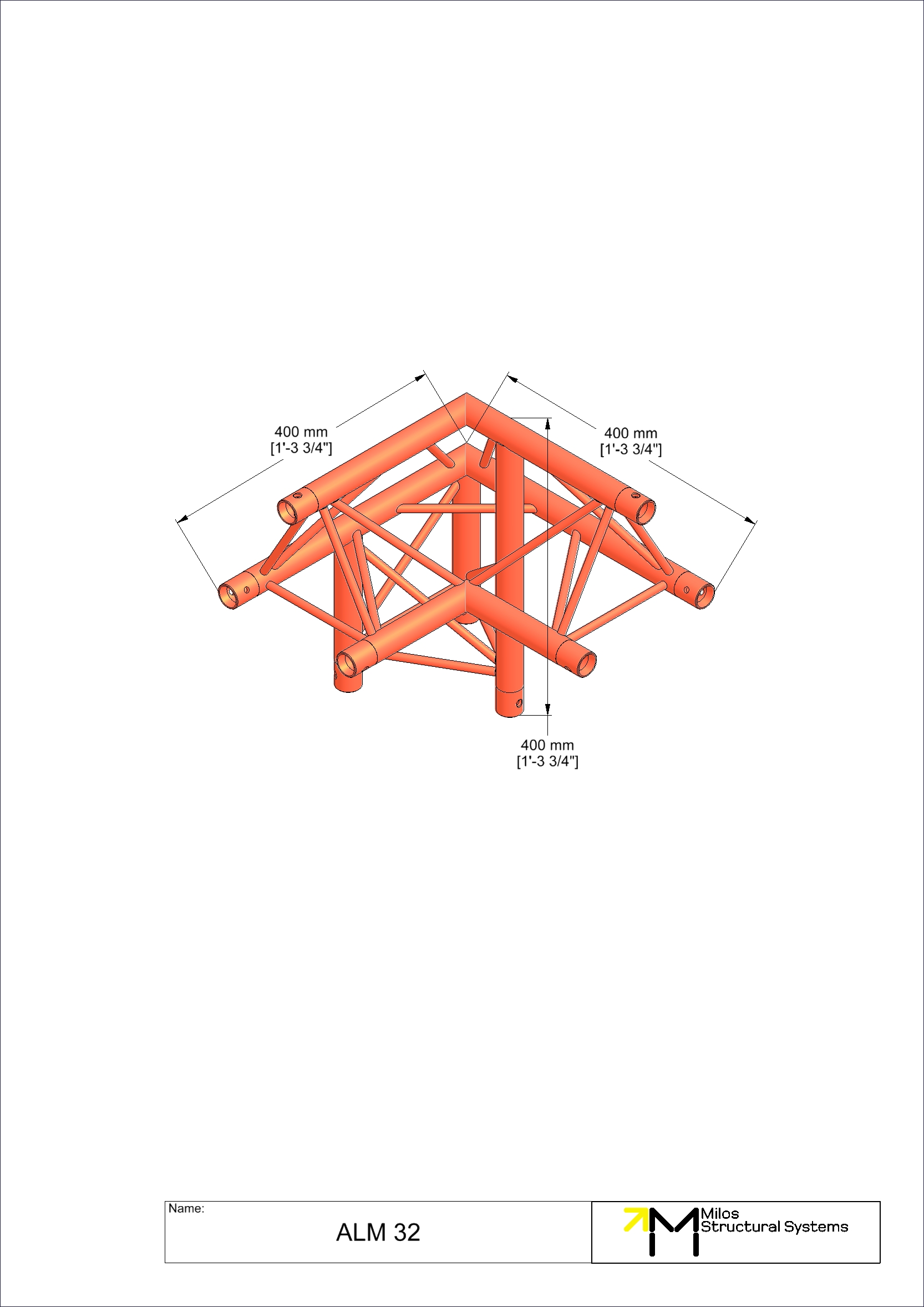 ALM32|3way90dg M222 trio 3way 90° truss corner apex up left 3-way corner 90° apex up left