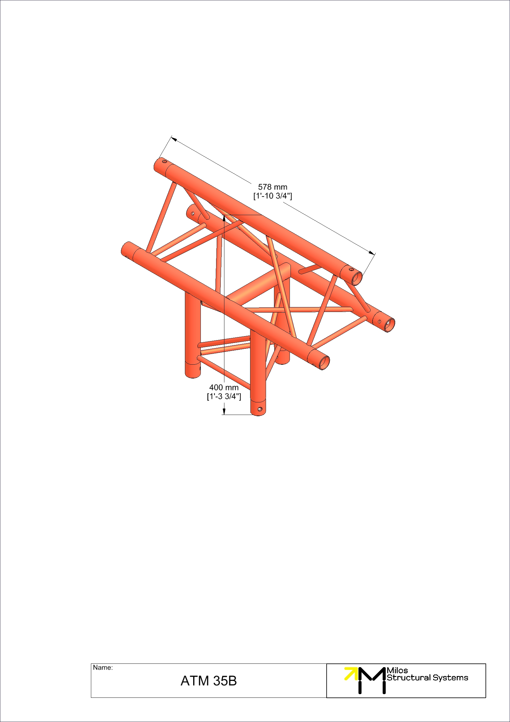 ATM35B|3wayT M222 trio 3way vertical t-piece truss corner apex up 3-way vertical tee apex up